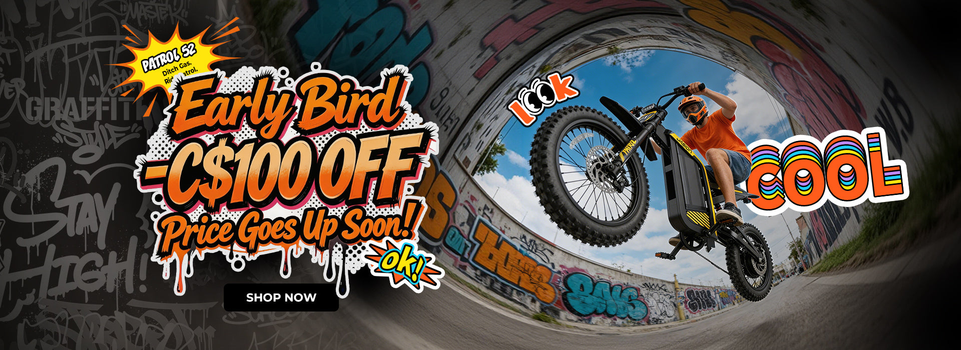 This fat tire bike has everything you need to take on your next adventure: integrated lights, shock-absorption fat tires, and a lightning-quick twist throttle for a boost.
